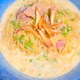 Pasta onegaishimasu... After finding this gem I just had to give them a visit and yup it was number one on my list and it's not just my opinion but the winner of the Restaurant Award Winner of Ethnic Restaurant of the year I noticed a couple of awards on the wall though the owner seems to be doing an interview so I couldn't get a clear pic of them. Anywho this is located on Spring Mountain Road which is a long stretch filled with Asian shops and restaurants which I was quite impressed with the variety of shops and restaurants...so much so after lunch I went to Kung Fu Tea next door lol! Since the great foodie mind as we think alike does frighten me I decided not to experiment and we both got the "Spaghetti Wafu Kurobuta Sausage & "Kinoko" all that in a Wafu Shoyu Sauce and it all came in a ramen bowl which gave it that type of look, topped it with a generous amount of shaved round white onions I assumed is meant to be tossed...nah! I can't to raw onion and just tucked it to the side which still gave this dish a lot of yumminess. As we arrived about a hour to closing we were still greeted delightfully and have been given a lovely table against the wall and as we chat about our Vegas adventure that's about to begin we noticed that the Dodgers was playing and mom being excited about that wanted to watch the game while we ate and changed to a table across the room so that she was able to see the game as well and that was so appreciated. Thank you!